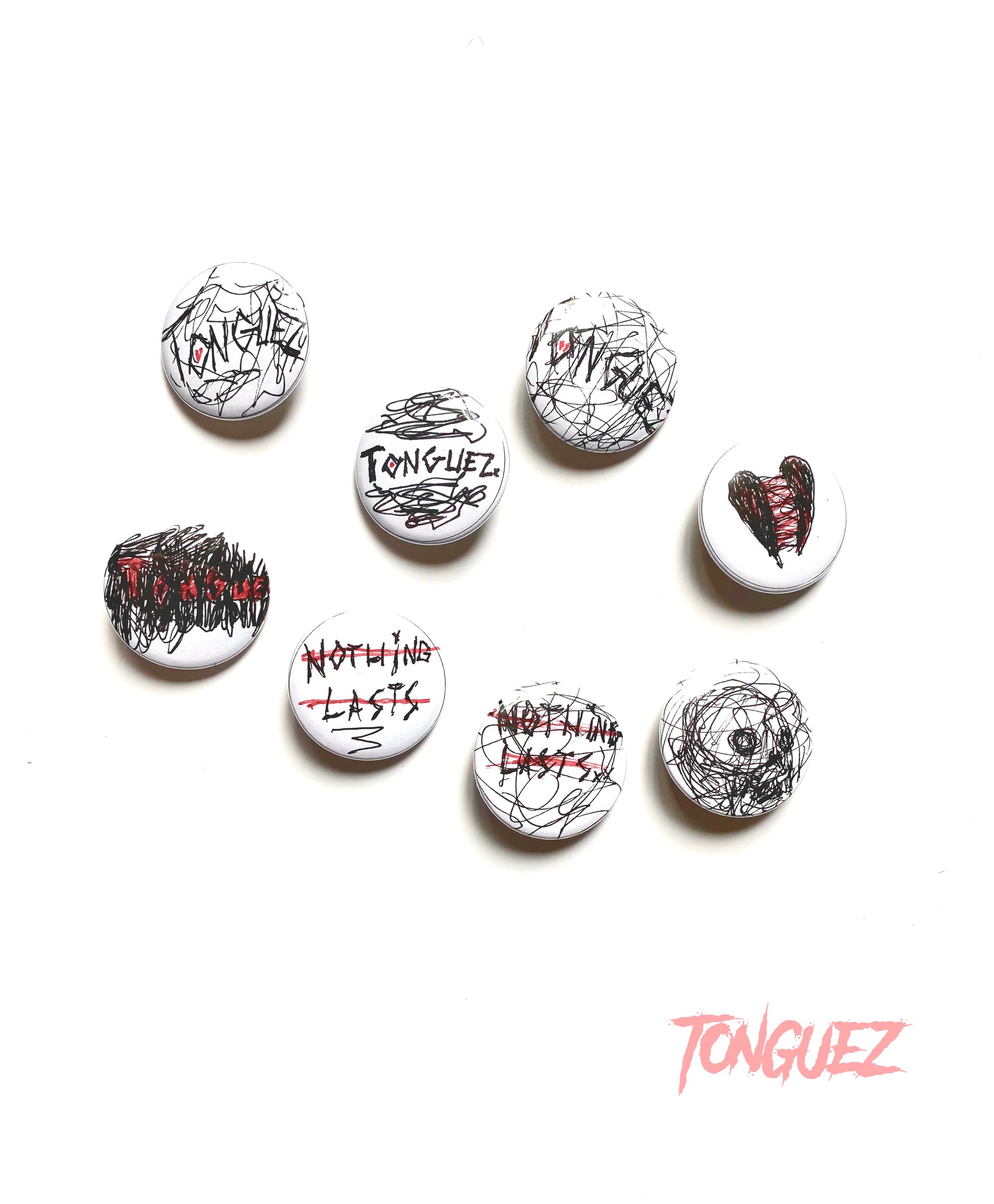 - Each button is handcrafted. - Has a metal backing with a safety pin attachment. - Each design is unique and may differ from the other.